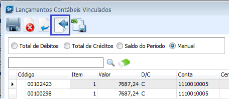 Para acessar a funcionalidade, selecione a edição de um lançamento da parte A através da seleção de lançamentos contabeis (quando o lançamento do LALUR for vinculado a uma conta contábil), clicando no botão destacado abaixo: