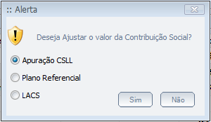 Apuração CSLL: Sistema criará uma adição no valor correspondente da CSLL apurado no sistema (exige apuração oficial da CSLL).
