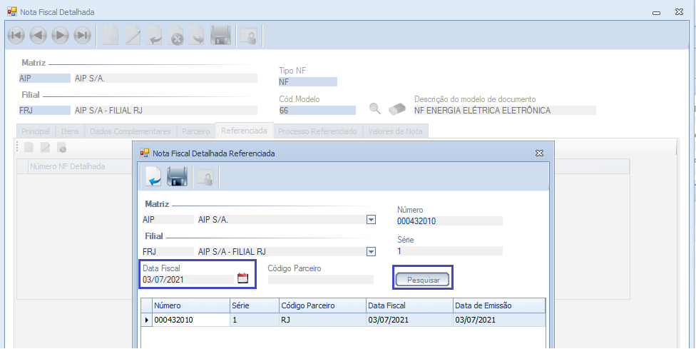 Descrição da Nota: Tratamento realizado na Tela Nota Fiscal Detalhada para que não ocorra erro ao associar a nota detalhada referenciada, utilizando o campo Data Fiscal como filtro de pesquisa, em ambiente SQL.