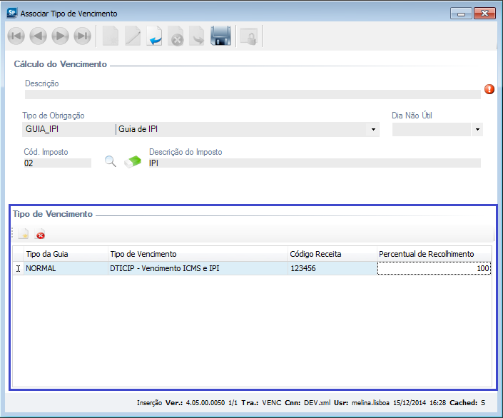Melhoria na configuração do Tipo de Vencimento, a manutenção passa a ser feita no próprio grid.