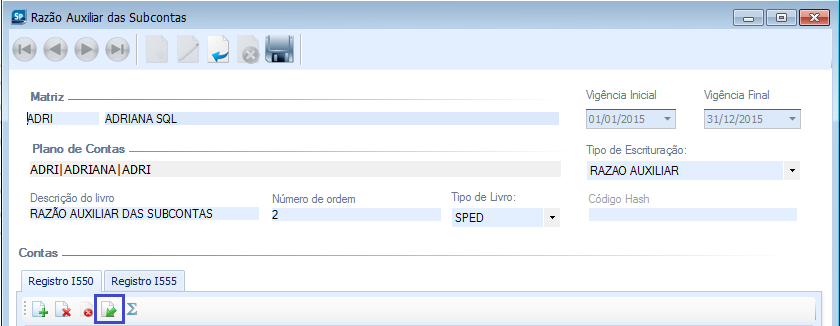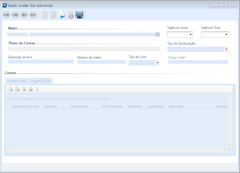 O registro I555 será totalizado automaticamente através do campo 4 - DESC_GRP_TOTAL_I555 informado no leiaute de importação do Razão Auxiliar das Subcontas – RAS.