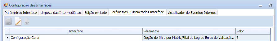Foi realizada uma melhoria na tela de edição de registros com erros de validações nas Interfaces,  para que seja possível realizar filtros de Matriz e Filial nos registros dessa tela, desde que o parâmetro de filtro do log de erros esteja configurado para isso. Esse parâmetro possui o valor setado “N” como padrão, demonstrando que a ideia é preservar o antigo funcionamento da tela.