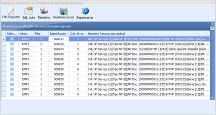 Os Erros são agrupados por registro.
