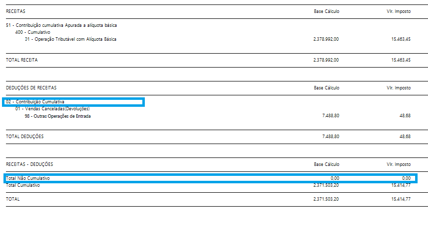 Condição de Negócio parametrizada em 02- Operações com Incidência Cumulativa