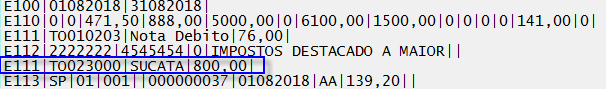 Descrição da Nota: Tratamento realizado nos registros: E111, E116, E220, E250, E311, E316 e E530 para retirar os códigos de impostos que estavam fixos no filtro de geração das informações para classificar os ajustes e guias em seu respectivo registro. Tratada também a geração do campo 02 (COD_INF_ADIC) do registro E115 para que não seja gerado em branco quando o campo "Código de Benefício Fiscal" da Nota Fiscal estiver preenchido com espaço.