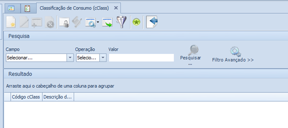 Após selecionar Classificação de Consumo (cClass), será aberto a seguinte tela: