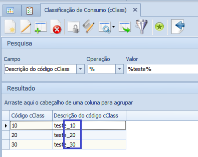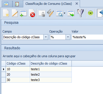 Descrição da Nota: Desenvolvimento da tela `Classificação de Consumo (cClass)' para inclusão e manutenção dos Códigos de Classificação de Consumo.