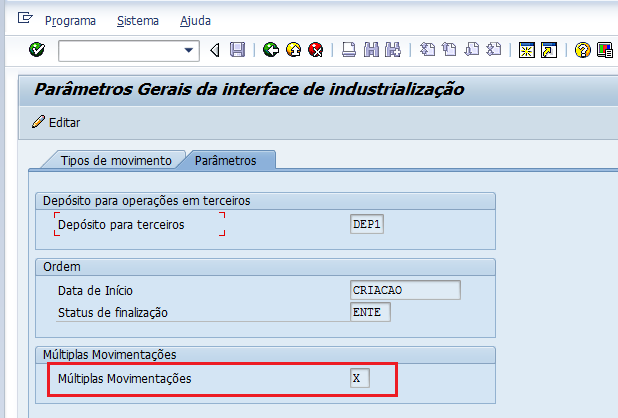 Ao definir o valor desse parâmetro para ‘X’ a seguinte regra passa a ser válida para todos os documentos de movimentação interna: