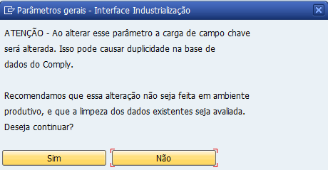 Ao definir que será ativado o parâmetro e selecionado o botão 'Salvar' será apresentada a mensagem abaixo para confirmar a alteração.