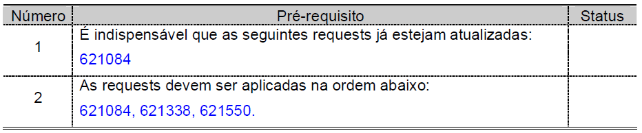 1 | É indispensável que as seguintes requests já estejam atualizadas: 604807 |