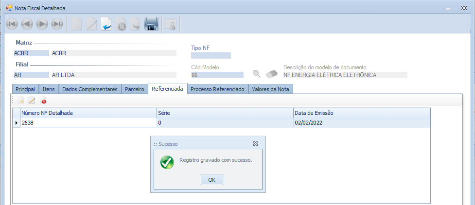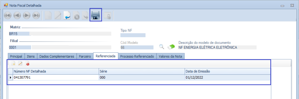 Descrição da Nota: Tratamento realizado na Tela Nota Fiscal Detalhada para não travar ao clicar no botão Salvar, quando existir nota fiscal detalhada referenciada, em ambiente SQL.