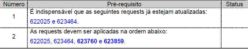 É necessário aplicar as requests e seus pré-requisitos das Notas 001723 e 002217.