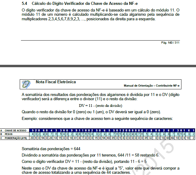- Conteúdo Chave Nfe: Inclusão de validação para o dígito 44, referente ao dígito verificador. Conforme item 5.4 do Manual de Orientação ao Contribuinte Versão 6.0.