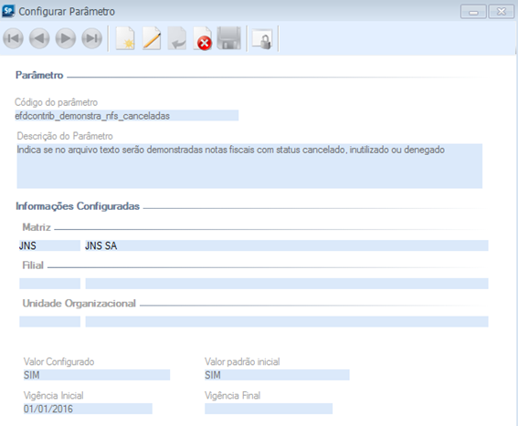Para acessar a funcionalidade, configure o parâmetro efdcontrib_demonstra_nfs_canceladas com o valor SIM, que irá indicar se no arquivo texto serão demonstradas notas ficas com status cancelado, inutilizado ou denegado.