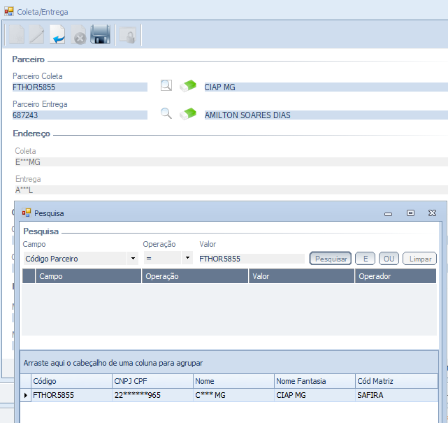 Tratamento realizado nas abas "Parceiro" e "Coleta/Entrega" da Tela Nota Fiscal para possibilitar a visualização através de máscaras dos dados sensíveis do parceiro (pessoa física), em atendimento à Lei de Proteção dos Dados Pessoais, nº 13.709 - LGPD.