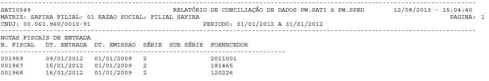 No relatório de apoio CONCILIAÇÃO DE DADOS PW.SATI x PW.SPED serão demonstradas as Notas Fiscais que deveriam estar no PW.SPED, mas não foram importadas, isso para as origens de Notas Fiscais de Entrada e Saída e Notas Fiscais de Entrada Serviços e Saída Serviços.