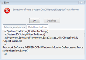 No momento de salvar o arquivo do Relatório de Análise Técnica, demostrava a mensagem: