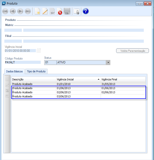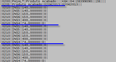 O registro 0210 era duplicado quando havia várias vigências para determinado produto dentro do período de geração, conforme demonstrado abaixo: