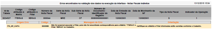 Implementada funcionalidade que permite que as validações de Matriz e Filial sejam verificadas antes das demais. Em caso de falha ao encontrar Matriz/Filial as demais validações não são executadas para o registro, desta forma possíveis erros que tem relação com a encontrar Matriz/Filial, não serão validadas desta forma não serão escritas no log de validações, deixando o mesmo mais sucinto. Conforme demostrado abaixo: