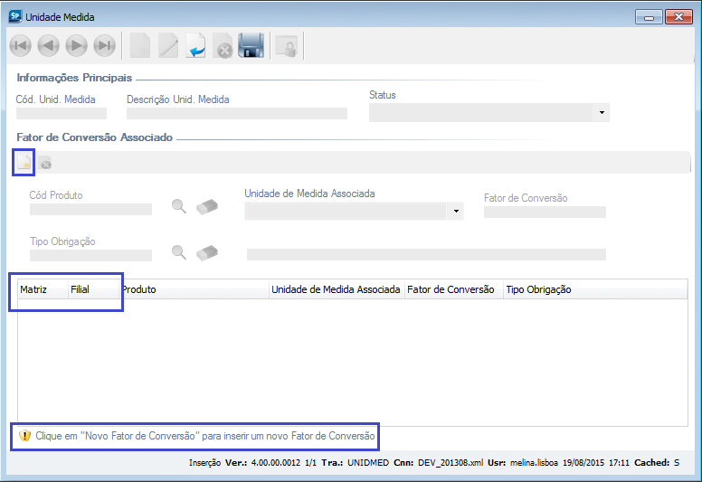 A lista de Fatores de Conversão Associados na tela de Unidade de Medida não estava exibindo Matriz/Filial do produto, dificultando a parametrização das informações.