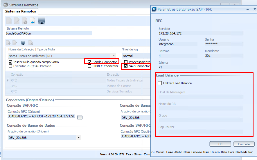Apesar da questão do suporte descontinuado à librfc32.dll, também torna-se possível configurar um ambiente SAP com configuração de Load Balance, que somente é possível através da opção SAP Connector, para que seja possível extrair os dados do SAP a partir do Sonda Connector.