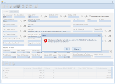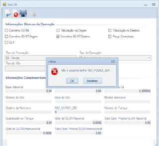 1 - Ocorriam os erros demonstrados a seguir, ao acessar a tela Item Oil do item da Nota Fiscal: