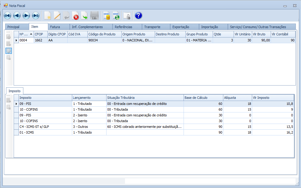 2 - Estava apresentando a mensagem, 'Já existe outro imposto PIS ou COFINS cadastrado para este item', ao inserir os impostos 09 - Pis ou 10 - Cofins com mais de um tipo de lançamento e bases de cálculos diferentes, conforme exemplo demonstrado a seguir: