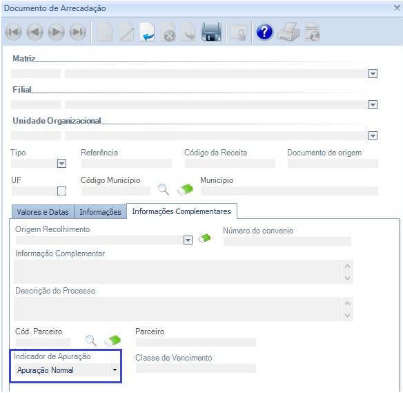 O campo “Indicador de Apuração” foi liberado para preenchimento na tela de Documento de Arrecadação para lançamentos relacionados ao imposto J6 – Diferença de Alíquotas - Origem.