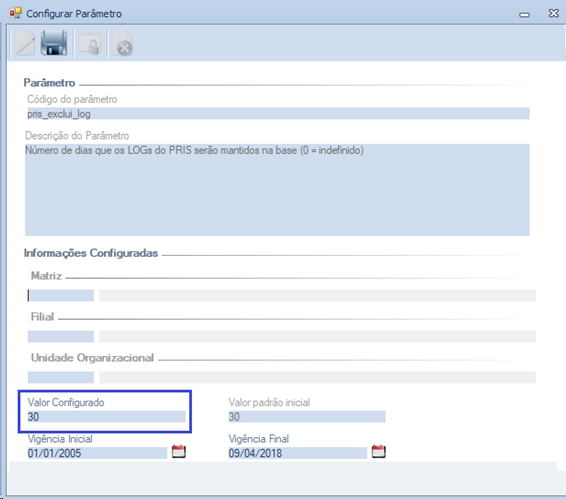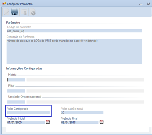 Descrição da Nota: Tratada a tela de Parâmetros para habilitar o campo "Valor Configurado" ao selecionar o ícone de Editar, da mesma maneira que ao efetuar o duplo click na tela de pesquisa.