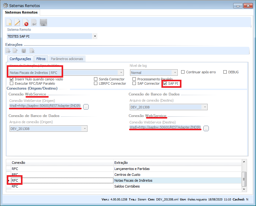 2. Parametrizar a Conexão do WebService do SAP PI/PO, conforme exemplo: