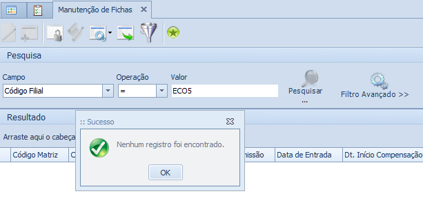 Ao pesquisar uma ficha que possua 2 Notas Fiscais ou mais referenciadas, o sistema apresentava a mensagem abaixo: