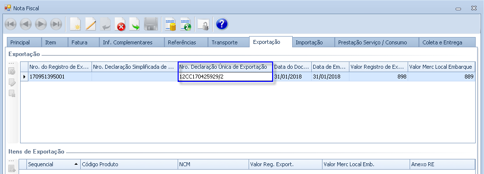 Descrição da Nota: Tratamento realizado no campo 03 (NRO_DE) do registro 1100 para que sejam apresentadas as letras que compõe o número da Declaração Única de Exportação (DUE), a partir da referência Janeiro/ 2018, conforme Guia Prático - Versão 2.0.21.