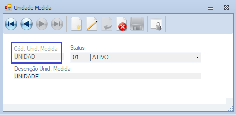 Descrição da Nota: Melhoria na tela Unidade de Medida, aumentando o campo Cód. Unid. Medida para seis dígitos.