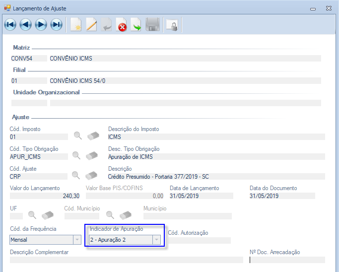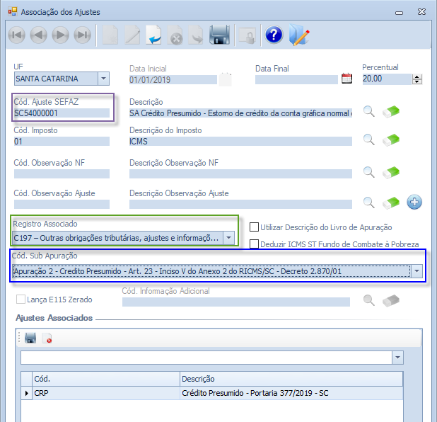 Exemplo: Sub-apuração 2 – Crédito Presumido: Art. 23, Inciso V do Anexo 2 do RICMS/SC, aprovado pelo Decreto 2.870/2001.