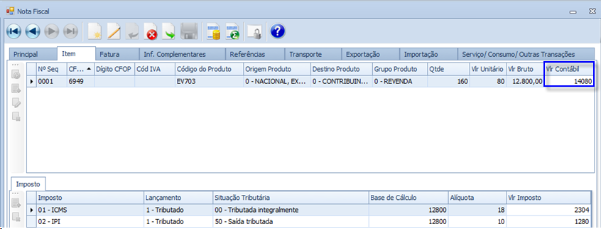 Tratada a geração dos campos relacionados abaixo para que seja considerado o Valor Contábil do Item ao invés do Valor Bruto do Item: