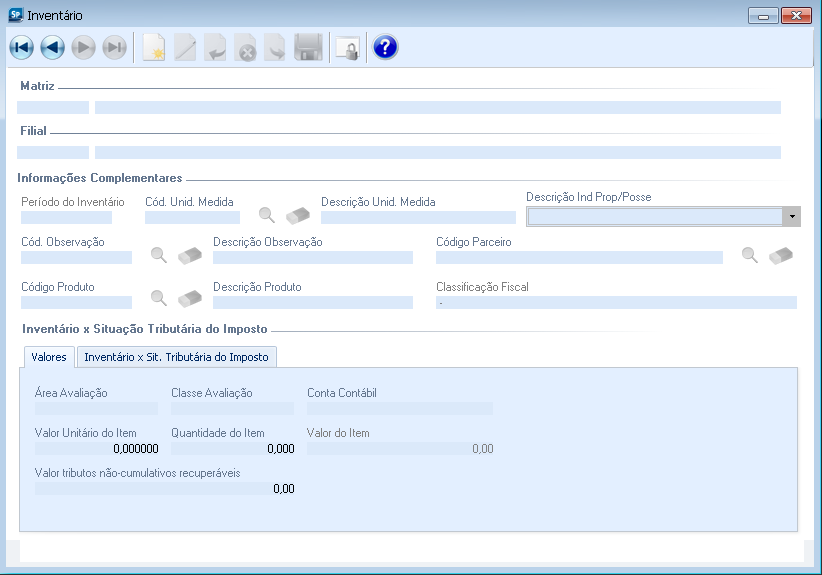 Para a geração do registro K200 serão consideradas as informações da tela 'Inventário', ilustrada a seguir: